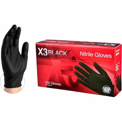 Ammex® BX34 Powder-Free Industrial Grade Nitrile Gloves, Black, 3 MIL, X-Large, 100/Box