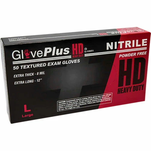 GlovePlus Heavy Duty powder free exam grade nitrile gloves. Great for manufacturing, automotive, chemical, medical, janitorial, etc. FDA Compliant.