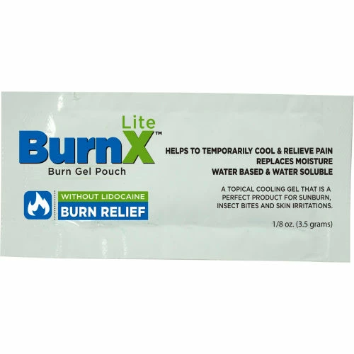 Burn X Lite First Aid Cooling Gel is the same fantastic formula as Burn X First Aid Burn Gel just minus the Lidocaine. Our formula cools and soothes the affected area and as a topical cooling gel Burn X Lite is a perfect product for sunburn, minor burns, bug bites and mild skin irritations.
