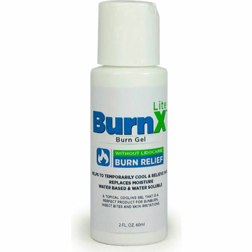 Burn X Lite First Aid Cooling Gel is the same fantastic formula as Burn X First Aid Burn Gel just minus the Lidocaine. Our formula cools and soothes the affected area and as a topical cooling gel Burn X Lite is a perfect product for sunburn, minor burns, bug bites and mild skin irritations.