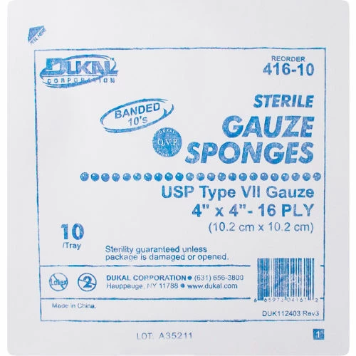 Dukal Gauze Sponge, 4" x 4", Sterile Tray, 16-Ply, 10/Tray, 128 Tray/Case
