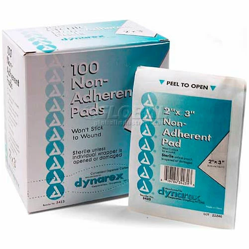 Dynarex Non-Adherent Sterile Pads, 2" x 3" Pad, 100/Box