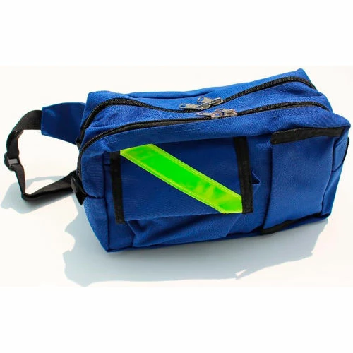 Rescue Fanny Pack (Navy);EMI’s Rescue Fanny Packs can carry your personal protective equipment or your basic response supplies. Made of 1000 Denier Cordura the Fanny Pack has three roomy outside pockets which can hold shears, instruments, penlight, window punch, pager, gloves etc. It also has two large inside pockets which can hold EMS supplies and small rescue equipment. The adjustable nylon webbing can fit 20″ to 54″ waists and has a quick-release buckle. Ideal for handsfree response. Fanny packs have reflective trim on front pocket. Measures 10″L x 6″H x 5″W.