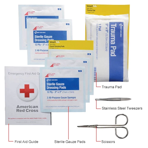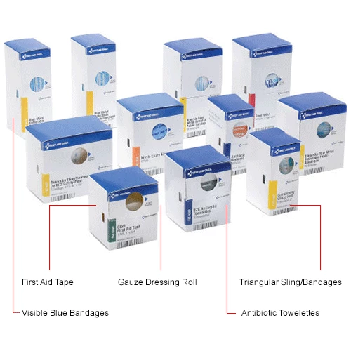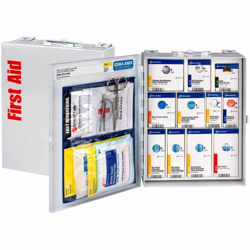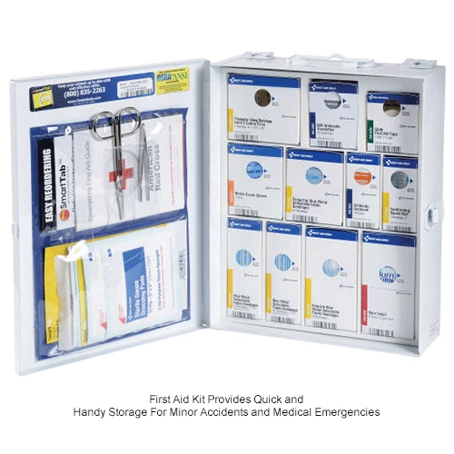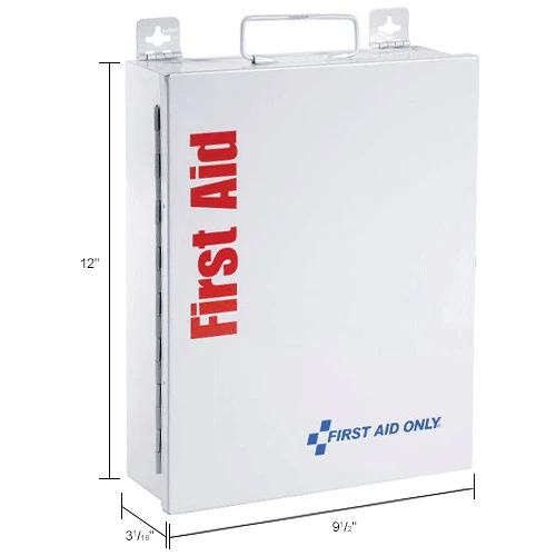 This food service kit is ideal for restaurants, delis, or any food service establishment. Case is 9-1/2″x 12″x 3.125″.The swing-out door and easy-to-carry handle add extra convenience. This unique SmartCompliance cabinet design eliminates disorganized and missing supplies. Clearly labeled compartments.