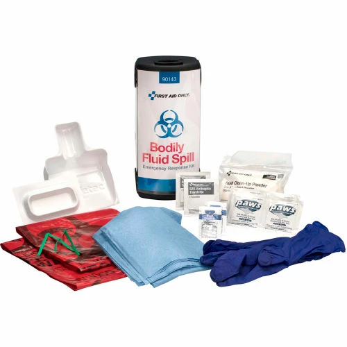 The First Aid Only Bodily Fluid Spill Emergency Response Kit includes the essential items that are required in the event of a bodily fluid spill. The kit provides a compact, easily transportable solution for bodily fluid spill preparedness in the workplace, home, or office.