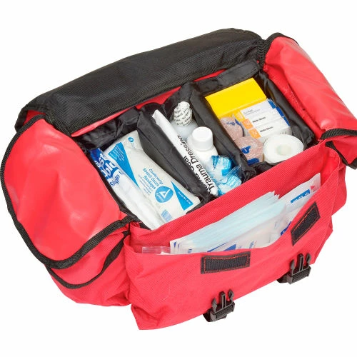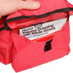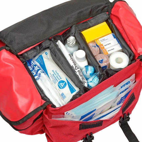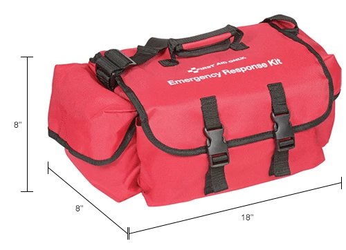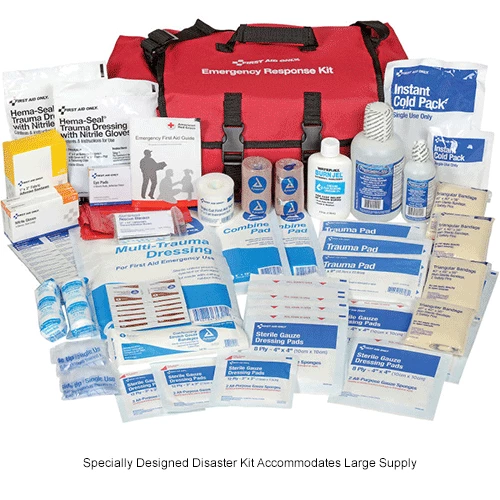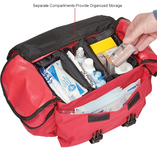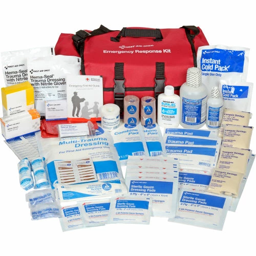 - Emergency response trauma kit includes a full assortment of EMS grade first responder supplies. Snap cover closure soft bag with organizer compartments inside. Roomy but compact. Sold as a 151 piece kitbag size: 11.5″ x 10.5″ x 5″.