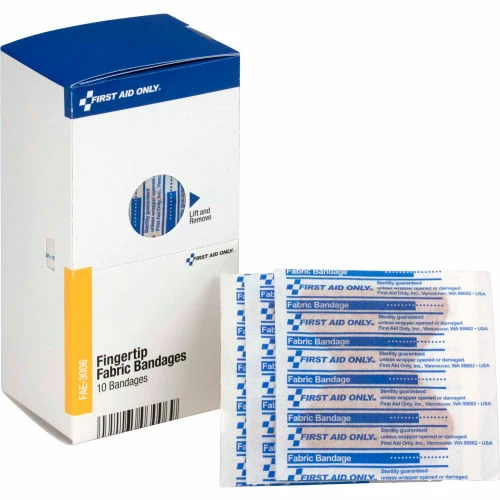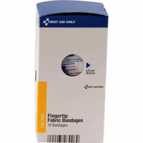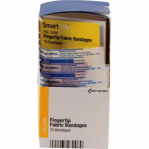 SmartCompliance Refill with 10 fabric fingertip bandages per box. The fabric adhesive bandages are ideal for minor cuts, abrasions and puncture wounds on the fingertip. Made with a pliable woven fabric, each bandage is ventilated to aid in the natural healing process. The flexible fabric is designed to wrap comfortably around the fingertip, stretching when you stretch while the strong adhesive still holds the bandage firmly in place. They effectively protect scrapes and cuts while the non-stick pad absorbs drainage. The breathable backing repels water and dirt.