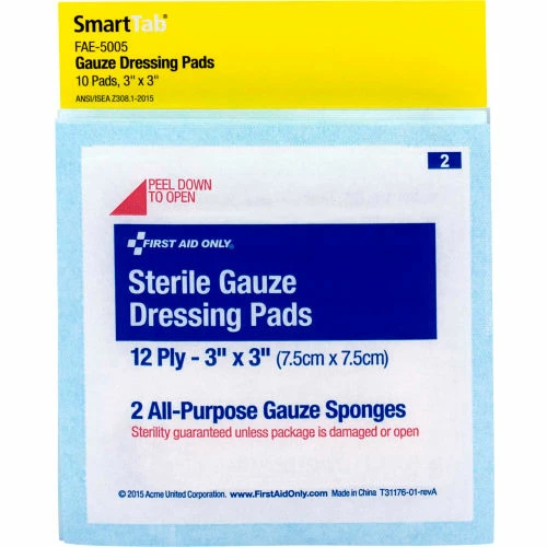 SmartCompliance Refill with 10, 3″x 3″ Sterile Gauze Pads. The 12-ply, 100% gauze pads are perfectly suited for cleaning wounds and applying medication or antiseptic. The non-adherent, all-purpose pads are breathable but also absorbent.