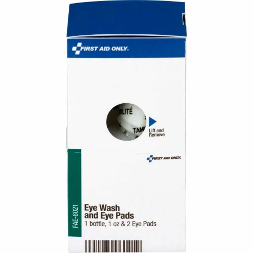SmartCompliance Refill with 1, 1 oz. Eye Wash Bottle and 2 Eye Pads per box. The single use eye wash bottle with a screw cap flushes the eye and is then covered with the 100% cotton sterile eye pad. The eye wash works to remove the debris in the eye while the eye pad provides protection and absorbs any fluids.