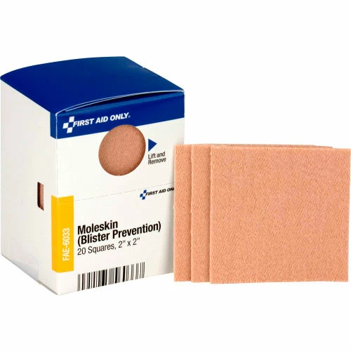 SmartCompliance Refill with 20, 2″ x 2″ Moleskin Blister Prevention squares per box. The moleskin squares are made out of premium-grade material and can be cut to fit any specific need. The flexible material conforms to all contours, staying securely in place to help prevent the development of blisters. The moleskin cushions against friction and pressure.