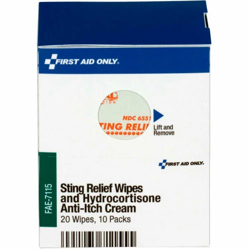 SmartCompliance Refill with 20 Sting Relief Wipes & 10 Hydrocortisone Cream Packets per box. The sting relief wipes temporarily relieve pain and itching associated with minor burns, scrapes, insect bites and stings. The wipes easily cleanse the area around point of insect puncture. The hydrocortisone cream helps relieve minor skin irritations itching and rashes due to eczema dermatitis insect bites detergents cosmetics and jewelry. Individual single use packets are easy and convenient to use.