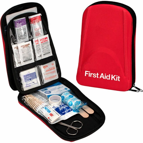 This kit will have you prepared for any potential emergency at home, in the office or on the go. The clear pockets in the fabric pouch keep the first aid supplies organized and easy to locate. This kit is the ideal size, fitting nicely into a backpack, vehicle compartment or desk drawer. Made in the USA.
