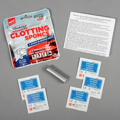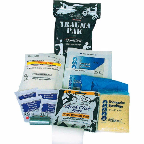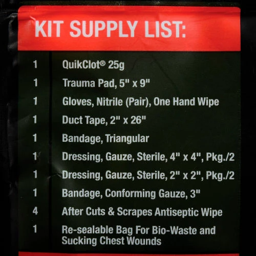 Tactical professionals know that excessive equipment only gets in the way in an emergency. With that in mind, the Trauma Pak with QuikClot® is designed to stop bleeding and control serious trauma at the scene so more advanced care can be sought later. Packed in a tough, waterproof pouch sized to fit in any pocket, the Trauma Pak with QuikClot® is easy to deploy: just rip open, pull out the QuikClot® dressing to quickly apply to any life-threatening bleeding. Use the other bandages and dressings as needed. A pamphlet with instructions and information on how to treat traumatic injuries is also included.