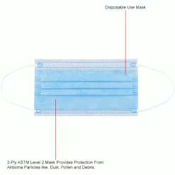 Protect yourself and your staff with the Global Industrialâ„¢ Disposable Medical Face Mask. Ideal for use in public or crowded indoor areas, medical facilities, and manufacturing plants, our mask provides ample protection against airborne particulates including dust, debris, and pollen. The mask’s pleated design is breathable and flexible, for added comfort during wear. FDA and CE certified.