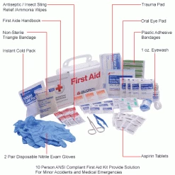 Easily store medical supplies in your facility with the Global Industrial First Aid Kit. Ideal for minor accidents and medical emergencies, these first aid kits are encased in a plastic cabinet for secure housing and organized storage of all first aid supplies for up to 10 people. The compact kit can be wall mounted or moved around utilizing its carry handle.