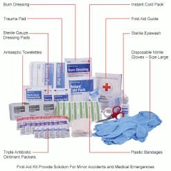 Easily store medical supplies in your facility with the Global Industrial First Aid Kit. Ideal for minor accidents and medical emergencies, these first aid kits are encased in a plastic cabinet for secure housing and organized storage of all first aid supplies for up to 10 people. The compact kit can be wall mounted or moved around utilizing its carry handle.