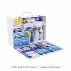 Easily store medical supplies with the Global Industrial First Aid Kit. This kit provides your facility with a quick and handy storage solution for minor accidents and medical emergencies. These first aid kits are encased in a long-lasting steel cabinet for secure, organized storage of all first aid supplies. Two interior shelves provide ample storage space making it excellent for personal use or in smaller industrial work settings.
