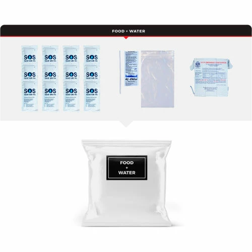 Food and Water: The food and water in this kit have a 5-year shelf life, and are meant to provide nutrition for 72 hours.