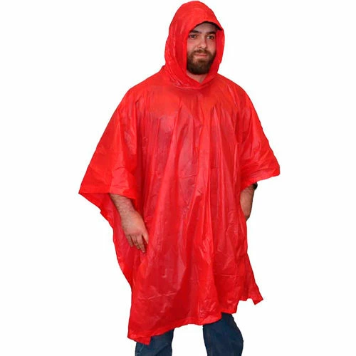 Thick vinyl emergency poncho to keep you dry in an emergency situation.