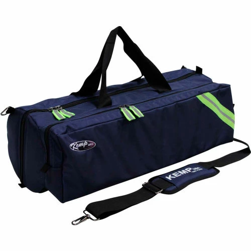 Kemp USA Cylinder Oxygen Bag is a durable oxygen duffel bag with a side pocket to hold and protect a D-tank and regulator. Completely padded inside with closed cell foam and two interior straps to secure and protect tank. Features 8 interior mesh pockets and one extended side pocket to holds supplies and accessories. The clamshell design with full zipper and reflective pull tab gives quick access to tank. Made of tough water resistant 1680 Denier Ballistic nylon with reflective trim and all black nickel hardware. Includes handheld duffel straps and a removable padded shoulder strap. Entire inner padded lining is removable.