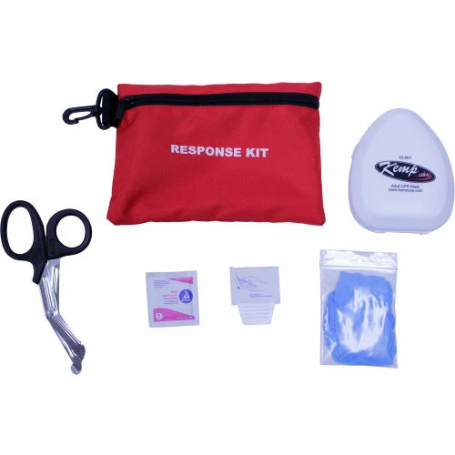 This is a convenient Response Kit which includes a CPR Mask with O2 outlet, Paramedic Shears, BZK Antiseptic Towelette, and Gallant Dispos- able Prep Razor, all in a red pouch labeled RESPONSE KIT. This kit can be customized.