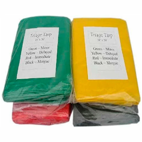 These triage tarps measure 16′ x 20′ and are made of 5 mil thick vinyl w/ grommets, come in 4 colors, sold in set of four only.