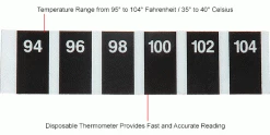 Disposable dual scale FeverScan® thermometer packaged with instructions for use. Includes a custom imprint on the back of the instructions. Packaged in a flat vinyl quarter wallet. This convenient thermometer features fast and accurate dual scale reading and is produced in an FDA registered facility. Features a temperature gauge of 95° to 104° Fahrenheit/35° to 40° Celsius.