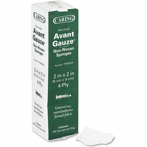 Four ply non-woven, Non-Sterile gauze sponge is made of a unique rayon/polyester formed fabric and yield significantly less linting than cotton gauze. Sponge is virtually non-adherent.