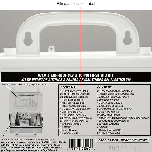 - Bilingual locator label on inside of lid makes finding what you need a snap