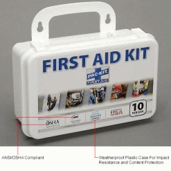 - Contains all required items from ANSI Z308.1-2009 and additional items from the “Recommended” list