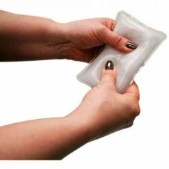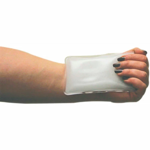 The re-usable Hot Button® hot pack instantly becomes hot once the button inside the pack is activated. The pack remains hot for at least 30 minutes. Re-usable pack is “recharged” and made ready for a future activation by boiling it for approximately 10 minutes. The activation and recharging of a pad can be repeated at least 100 times. The Hot Button® contents are not harmful; they are common non-toxic food additives. Activate pad by gently flexing disk within the pad back and forth until pad starts to crystalize; pad will heat to approximately 130°F (54°C). For cold pack refrigerate do not freeze. To return to liquid state wrap pad in cloth, place in boiling water for 5 to 12 minutes. Small – 3.5″ x 5.5″ – Case of 12.