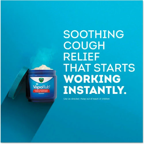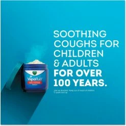 Kiss your cough goodbye, with a topical cough medicine with medicated vapors. It starts working quickly for to relieve cough symptoms. Appropriate for ages two and up, topical VapoRub® is a comforting choice for sick children. Not likely to cause drowsiness or jittery side effects when used as directed. Because it is a topical cough medicine, it may be appropriate for diabetics looking for an alternative to oral cough medicines that contain sugar. For more information, ask your doctor.